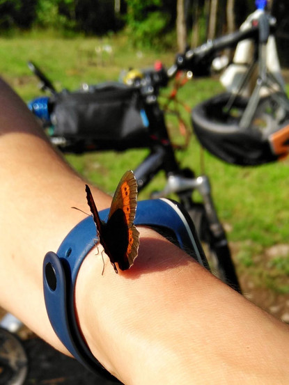 Одразу після виїзду з Міжгір'я починається поступовий набір висоти на Синевірський перевал, що згодом набирає крутизну у 8-10%, а ближче до вершини нахили на серпантинах збільшуються до 10-15%. Підійматися важко, бо асфальтове покриття в жахливому стані, без узбіччя і все в напливах та ямах, а ще і страшенна спека в цей день, більше 34 градусів. Тому підйом на вершину перевалу висотою 793 м н.р.м. виправдано вважаємо для себе за його підкорення!) Майже на вершині, де оглядовий майданчик з видом на полонини, зайшли в колибу з карпатською кухнею та гарним традиційним інтер'єром всередині, і спробували унікальний і дуже смачний напій - смерековий компот, який готується шляхом настоювання сиропу з "цвіту" смерек. Очікувалось, що спуск з перевалу буде приємним і швидким, але вниз виявилась така сама жахлива дорога як і від Міжгір'я, тому весь час трясло на буграх. Від села Синевір до Синевірської Поляни покриття покращилося, сонце ховалося за ялинками і їхати стало приємно. По дорозі виглядали зручні місця для намету, але вони всі були дуже близько до дороги чи за річкою без місця переходу. Прямо біля початку підйому на озеро знайшли дуже зручний варіант - господарі приватної садиби за 50 грн дозволили поставити намет прямо у них на галявині і користуватися альтанкою. А в альтанці було світло і навіть розетка Приємне завершення важкого дня)